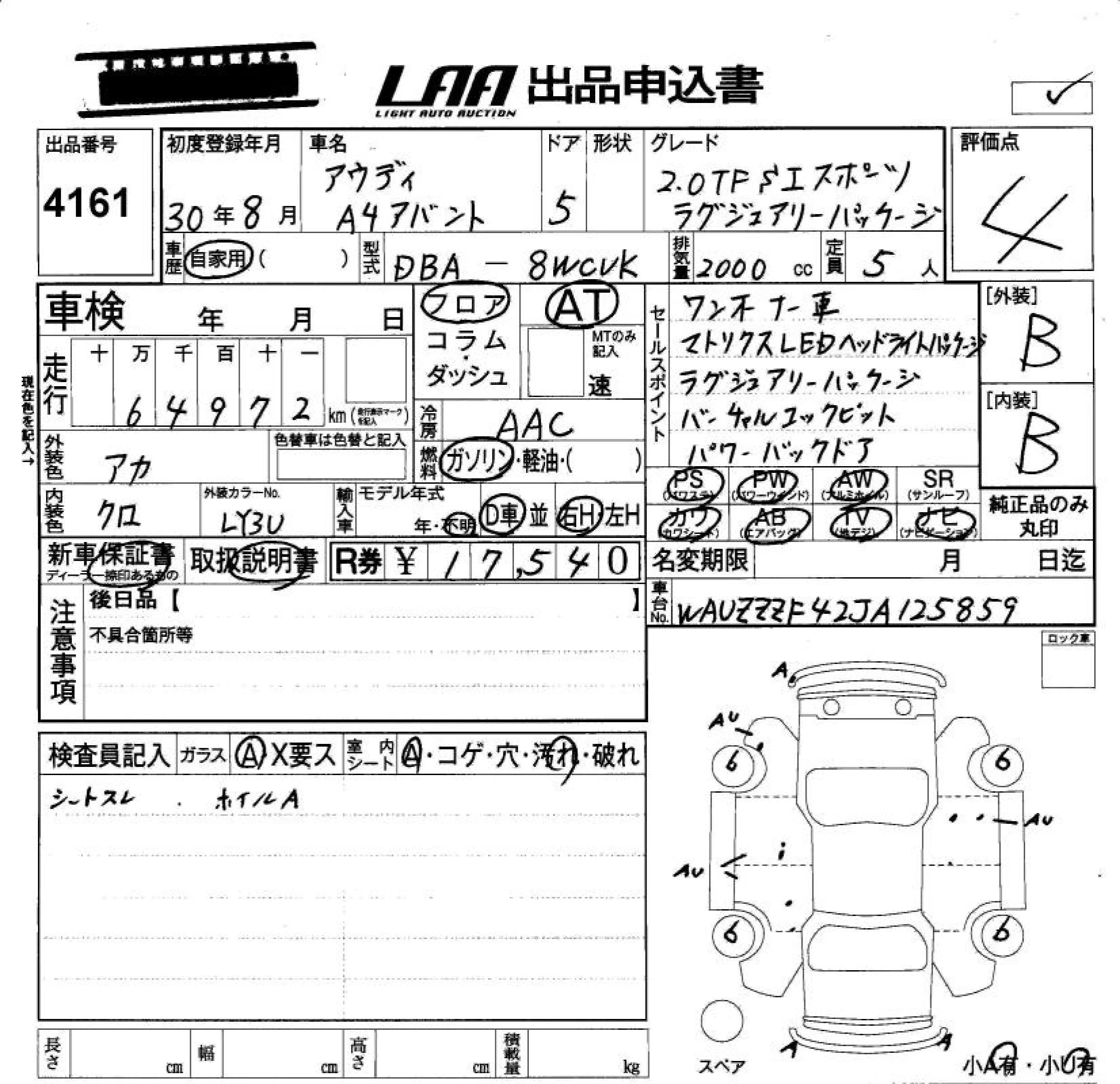 - Комплектация: 2.0TFSI Sports ラグジ