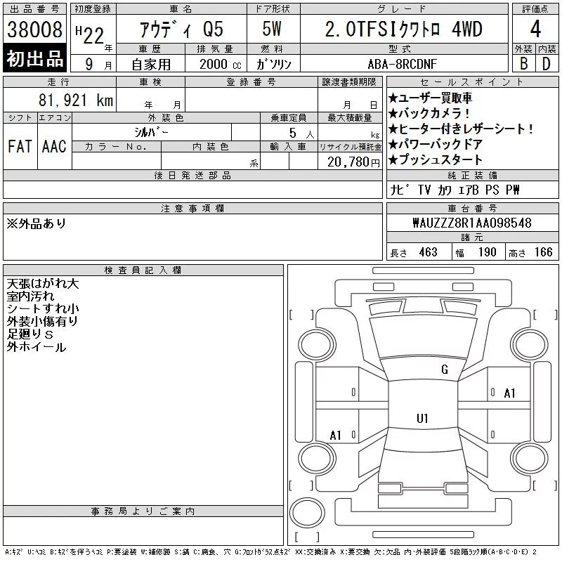 - Комплектация: 2.0TFSI Quattro 4WD