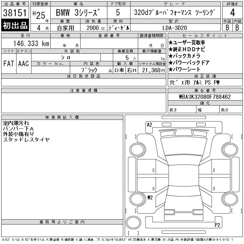 • Комплектация: 320d Bパフォ-マンス Touring