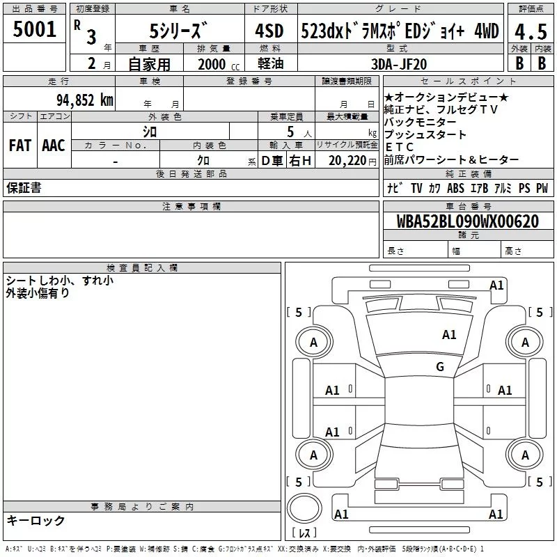 • Комплектация: 523dxドラM Sports EDジ 4WD