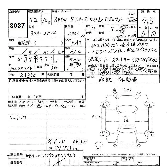- Комплектация: 4WD 523dx Mスピリット