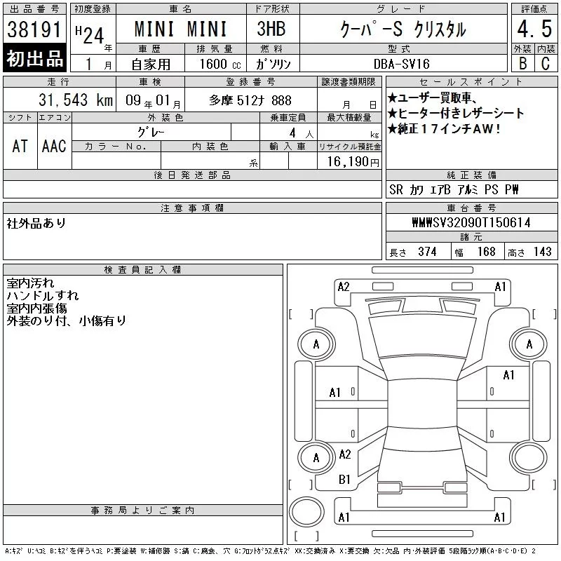 • Комплектация: Cooper -S クリ Star ル