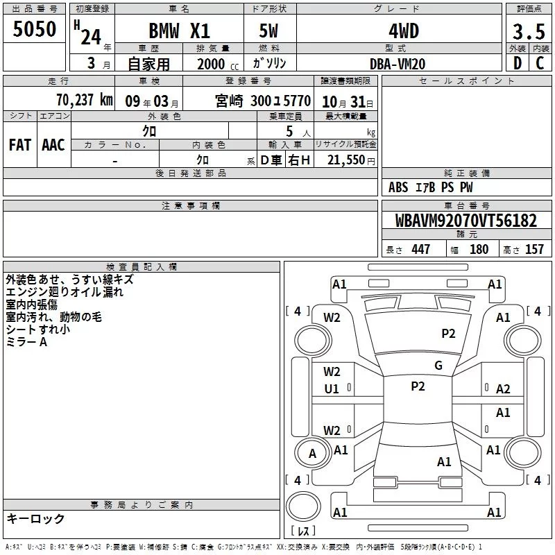 X DRIVE 20I SPORT | DBA-VM20 | N20B20A | Full-time 4WD | 8AT | 1997cc | 184ps(135kW)/5000rpm | AИ-95 | 4 470 000 | |