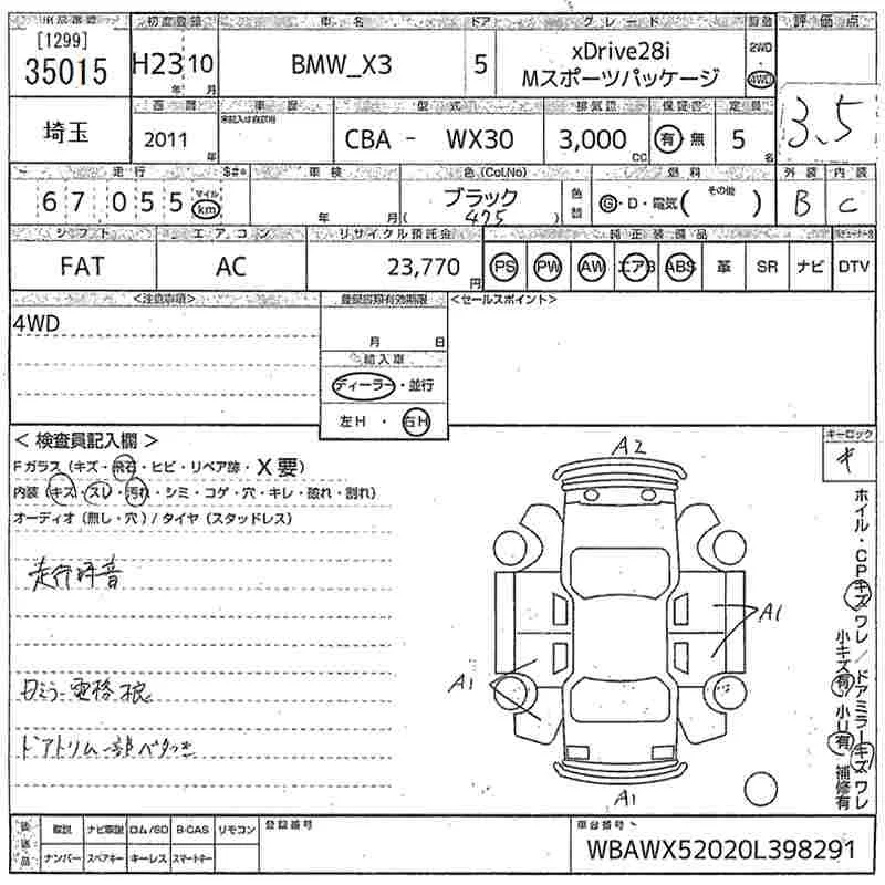 X DRIVE 28I | CBA-WX30 | N52B30A | Full-time 4WD | 8AT | 2996cc | 258ps(190kW)/6600rpm | AИ-95 | 5 980 000 |