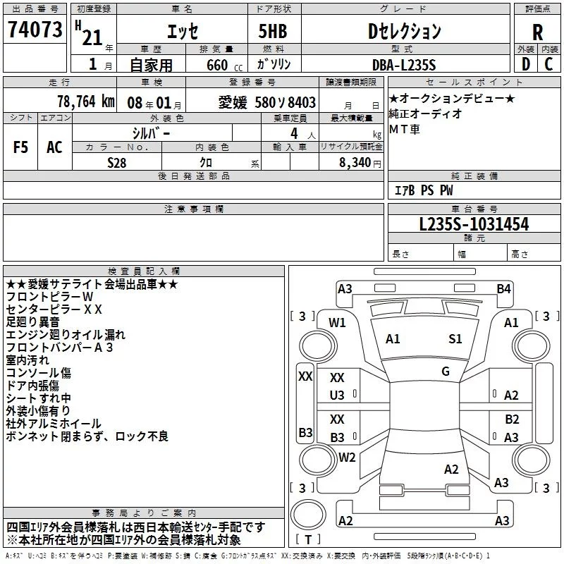 D | DBA-L235S | KF-VE | FF | 5MT | 658cc | 58ps(43kW)/7200rpm | AИ-92 | 770 000 | |
