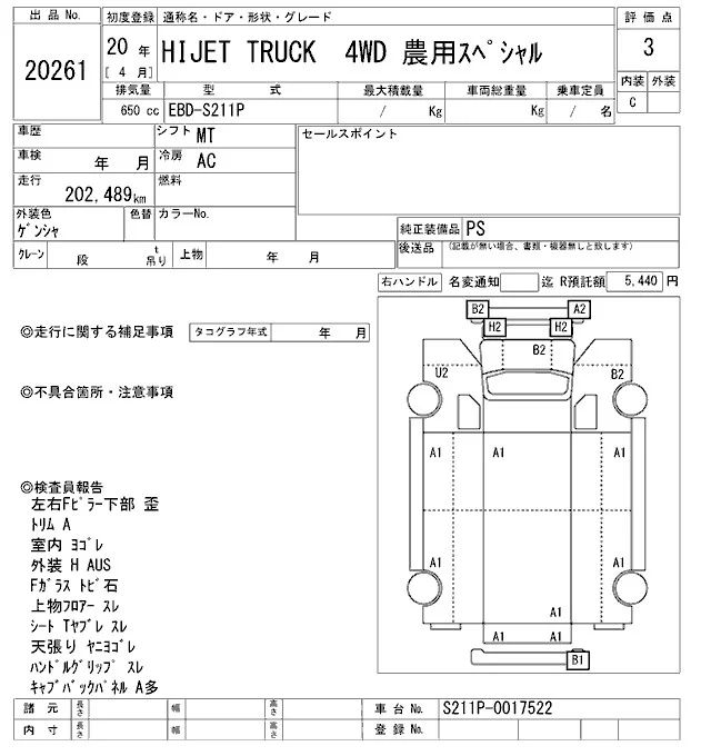• Комплектация: トラック.4WD