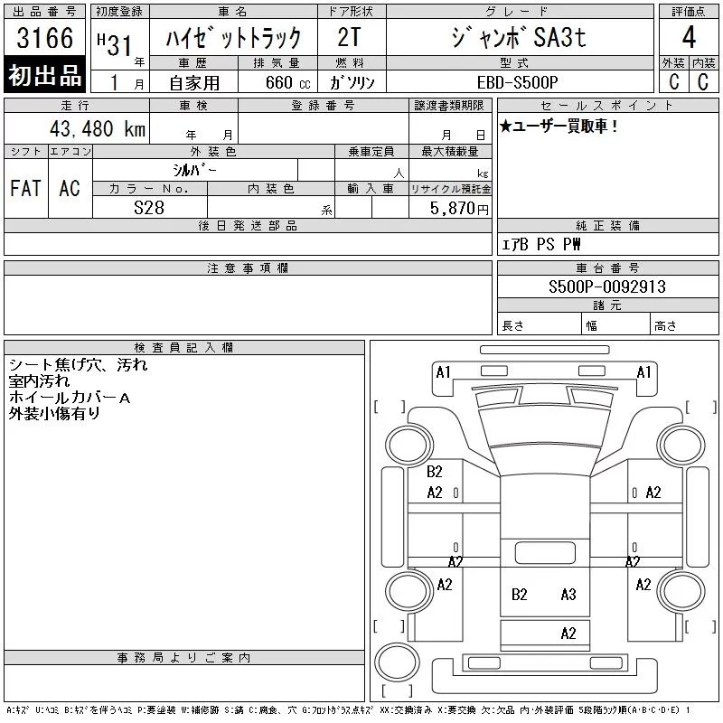• Комплектация: ジャンボSA3t