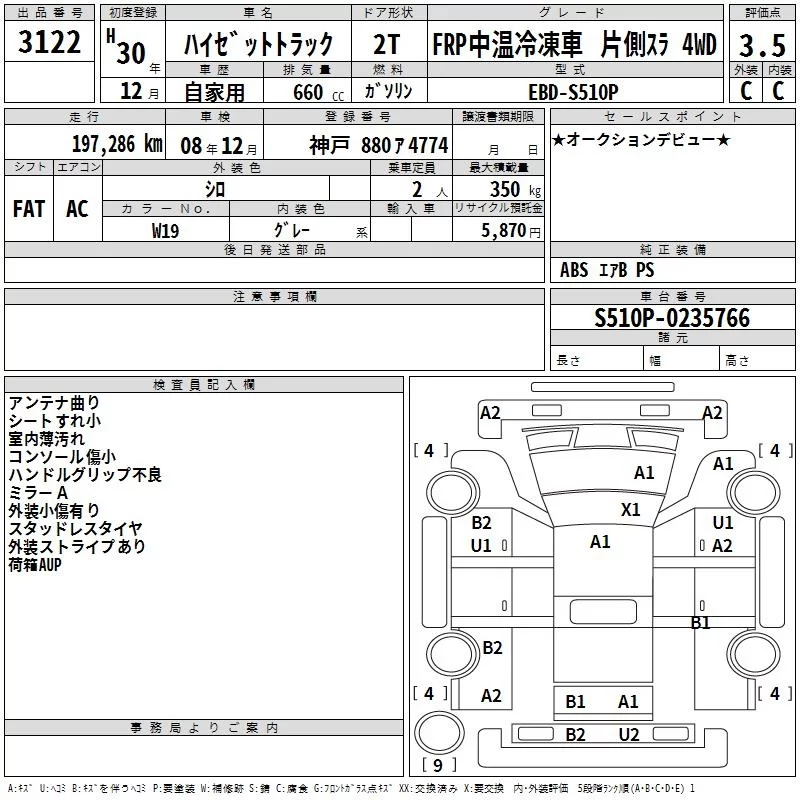• Комплектация: FRP チュウオンレイトウシャカ 4WD