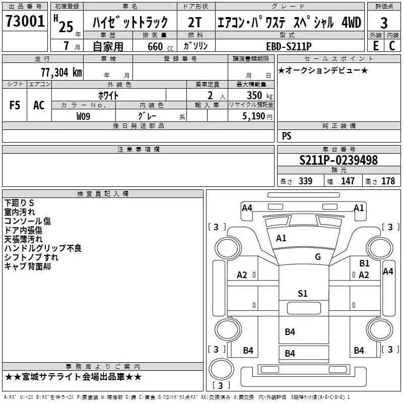 - Комплектация: Air conditioner power steering スペシャ 4WD