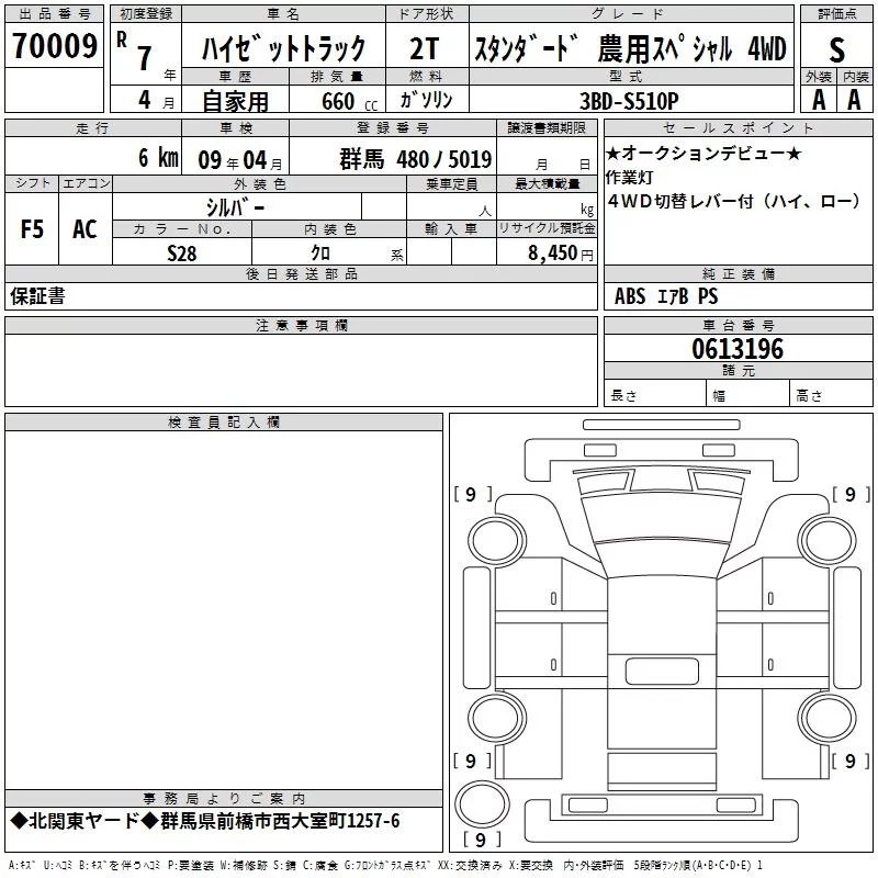 - Комплектация: Standard ノウヨウスペ 4WD
