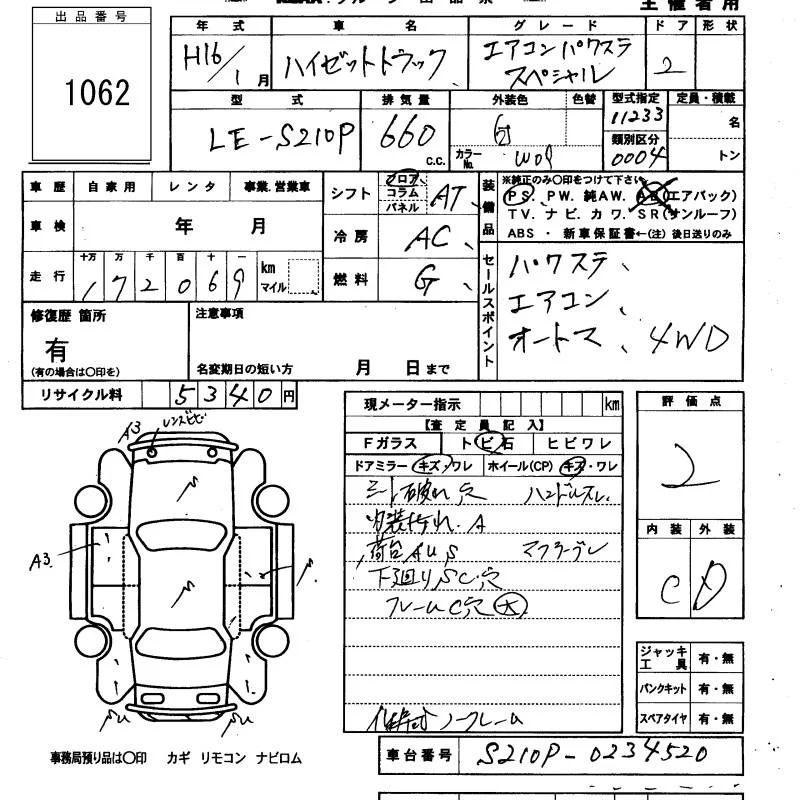 - Комплектация: Air conditioner Power steering special 4WD