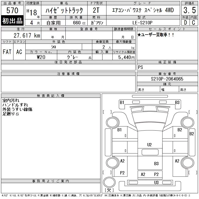 - Комплектация: Air conditioner power steering スペシャ 4WD