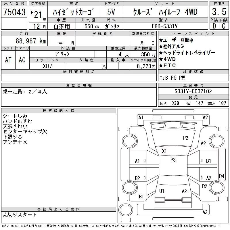 • Комплектация: Cruise High roof 4WD