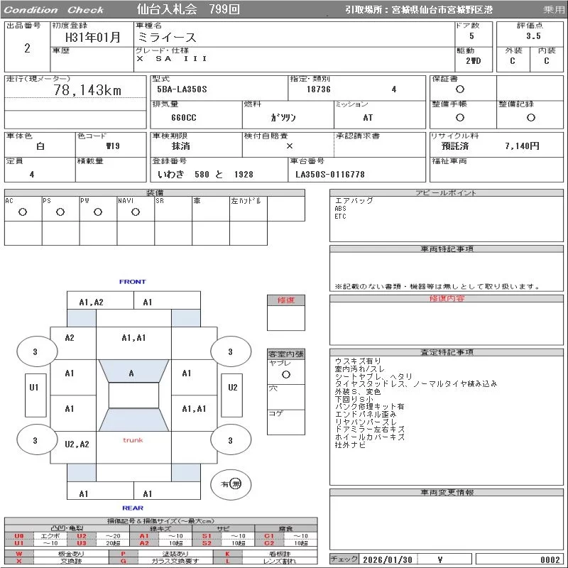 Надёжный авто с проверенного аукциона ORIX Sendai Nyusatsu