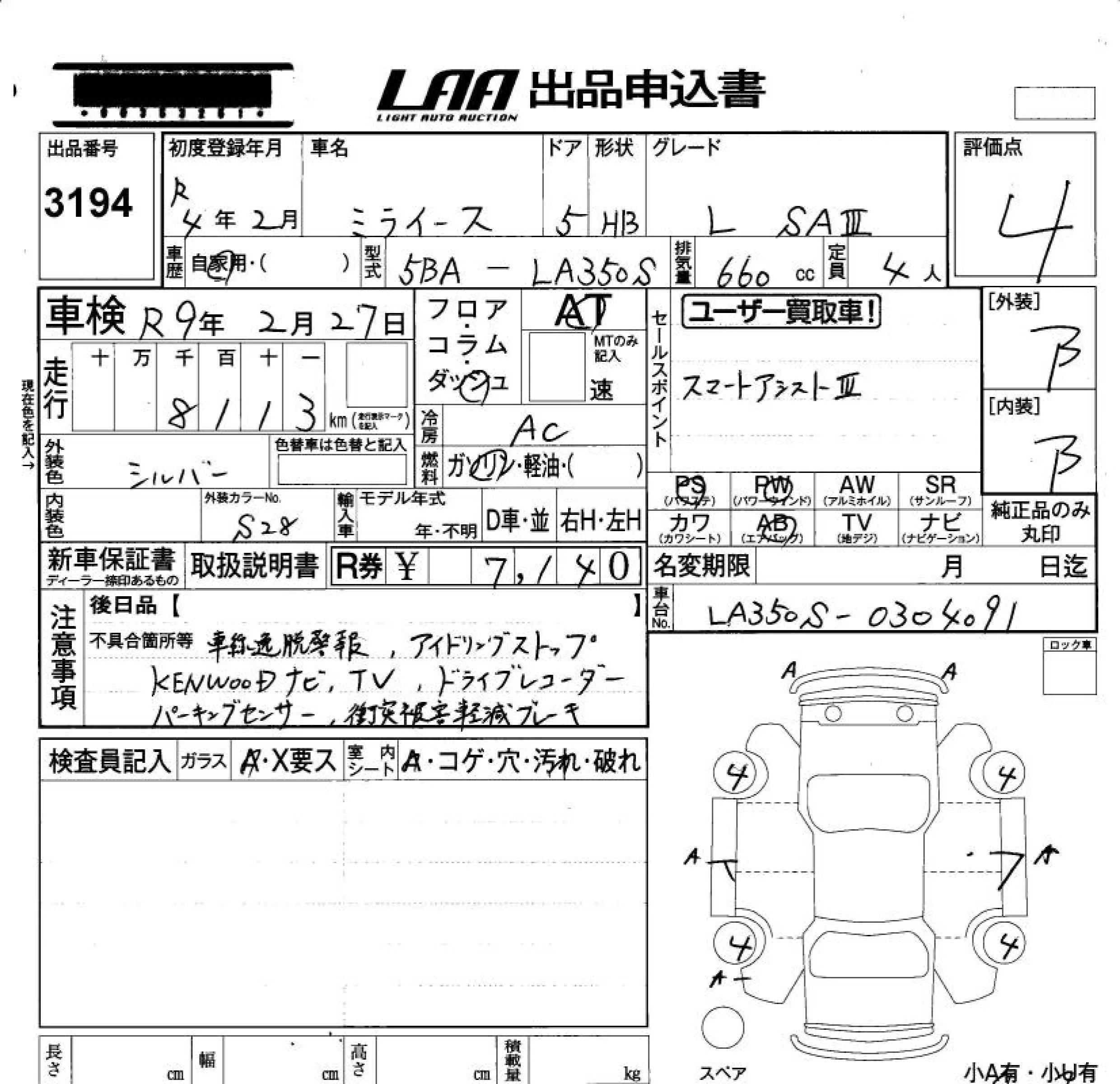 Надёжный авто с проверенного аукциона LAA Okayama