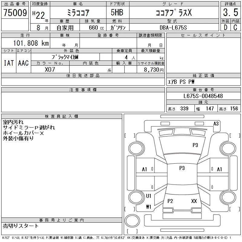- Кузов: L675S