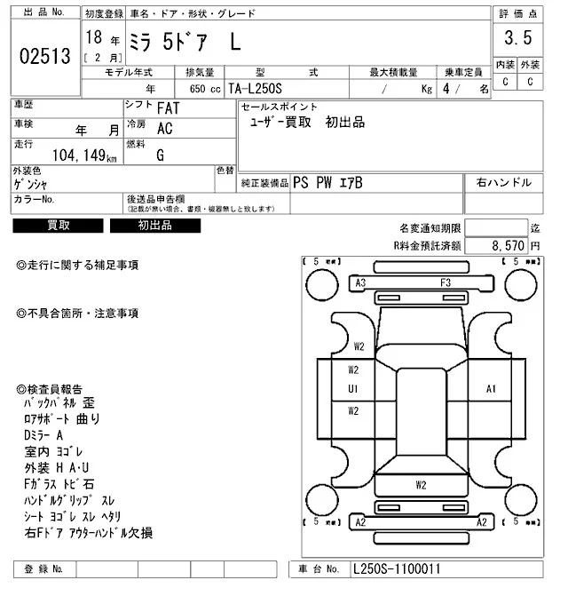 - Кузов: L250S
