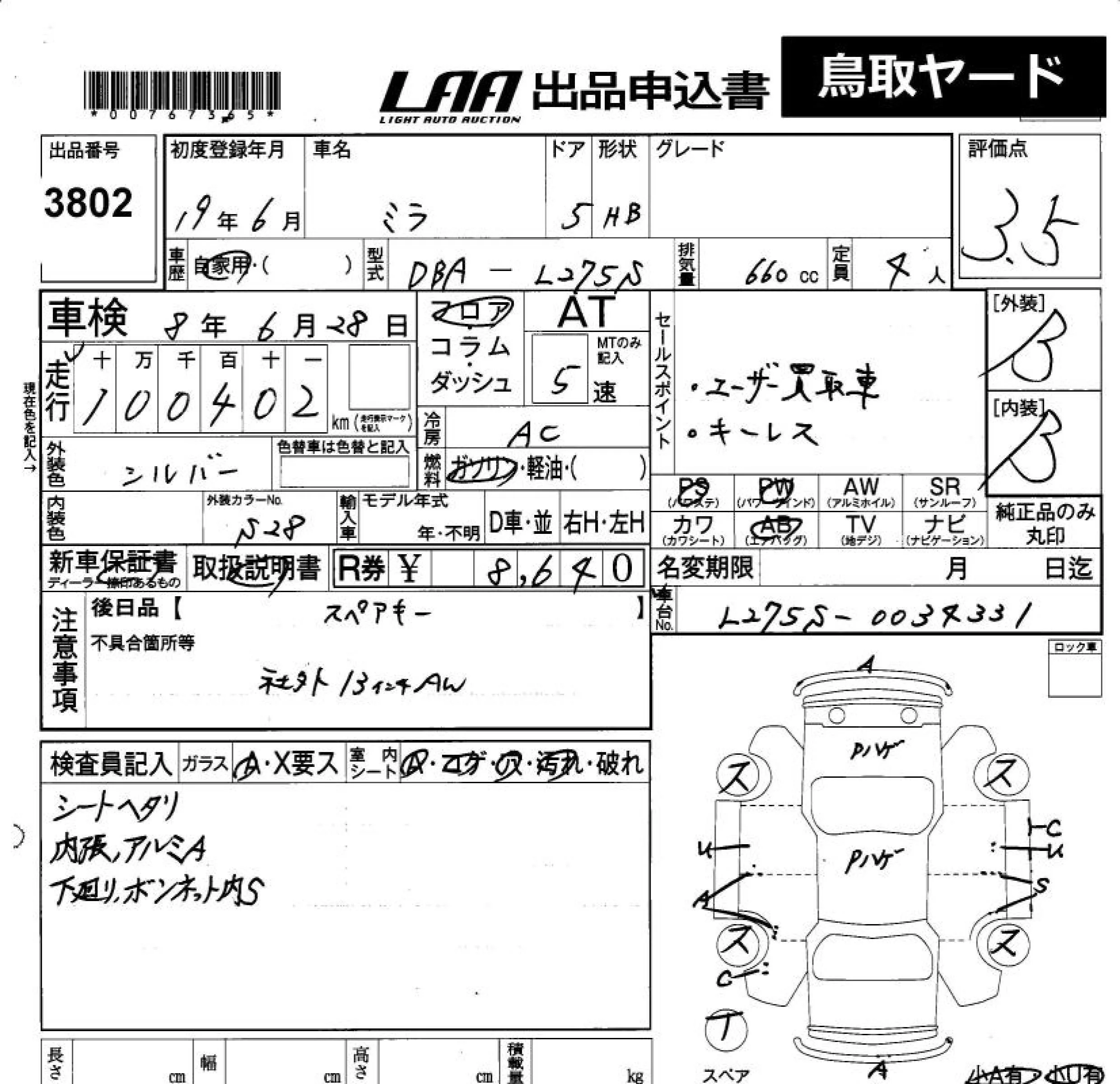 Надёжный авто с проверенного аукциона LAA Okayama