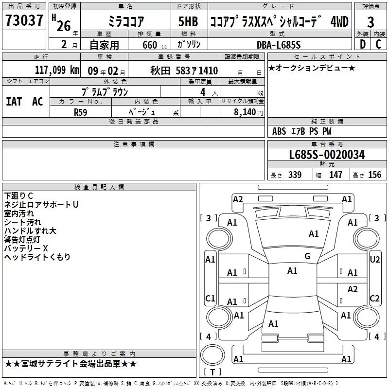 - Комплектация: Cocoa Plus X Special コ- 4WD