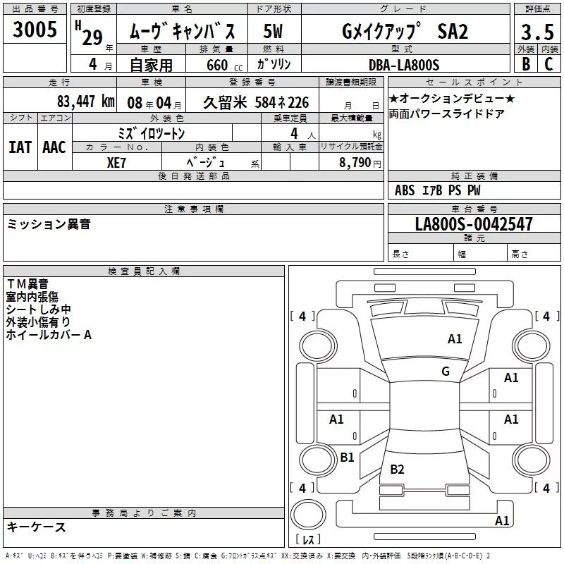 G MAKE UP SA III | DBA-LA800S | KF | FF | CVT | 658cc | 52ps(38kW)/6800rpm | AИ-92 | 1 544 400 | |