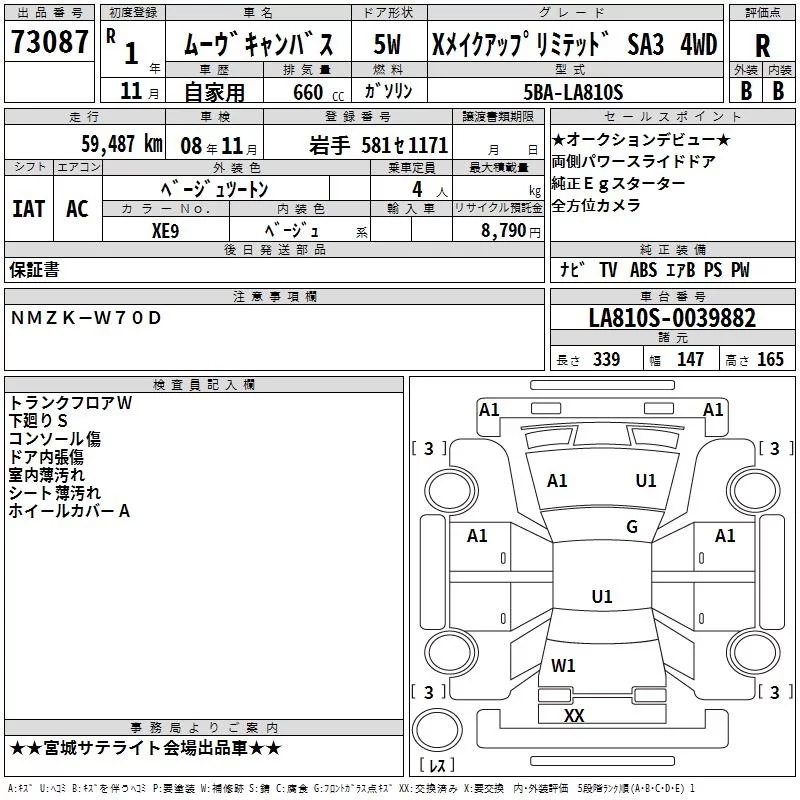 X MAKE UP LIMITED SA III | 5BA-LA810S | KF | Full-time 4WD | CVT | 658cc | 52ps(38kW)/6800rpm | AИ-92 | 1 633 500 | |