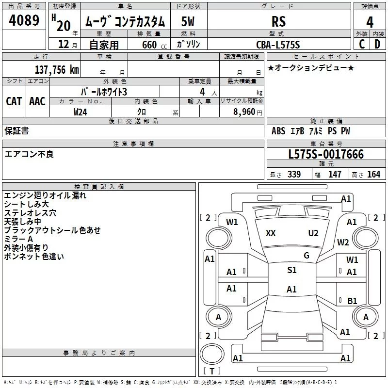 CUSTOM RS | CBA-L575S | KF-DET | FF | CVT | 658cc | 64ps(47kW)/6000rpm | AИ-92 | 1 554 000 | |