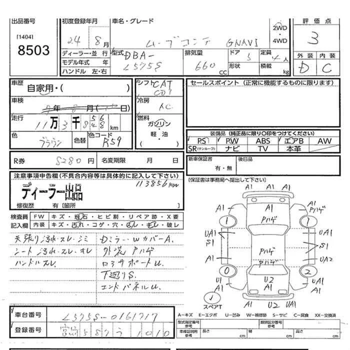 G NAVI | DBA-L585S | KF | Full-time 4WD | CVT | 658cc | 52ps(38kW)/6800rpm | AИ-92 | 1 441 000 | |