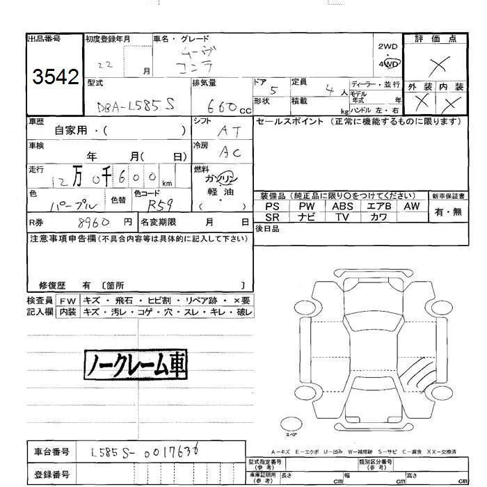 X | DBA-L585S | KF-VE | Full-time 4WD | CVT | 658cc | 58ps(43kW)/7200rpm | AИ-92 | 1 311 000 | |