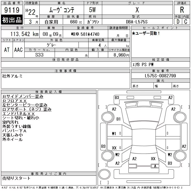 X | DBA-L575S | KF-VE | FF | CVT | 658cc | 58ps(43kW)/7200rpm | AИ-92 | 1 190 000 | |