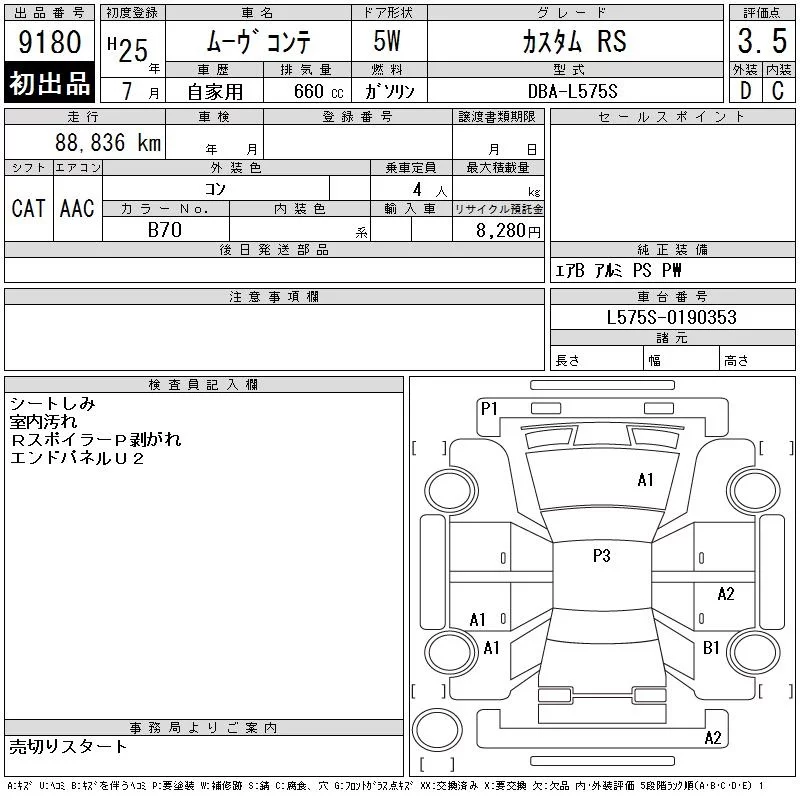 CUSTOM RS | DBA-L575S | KF | FF | CVT | 658cc | 64ps(47kW)/6400rpm | AИ-92 | 1 495 000 | |