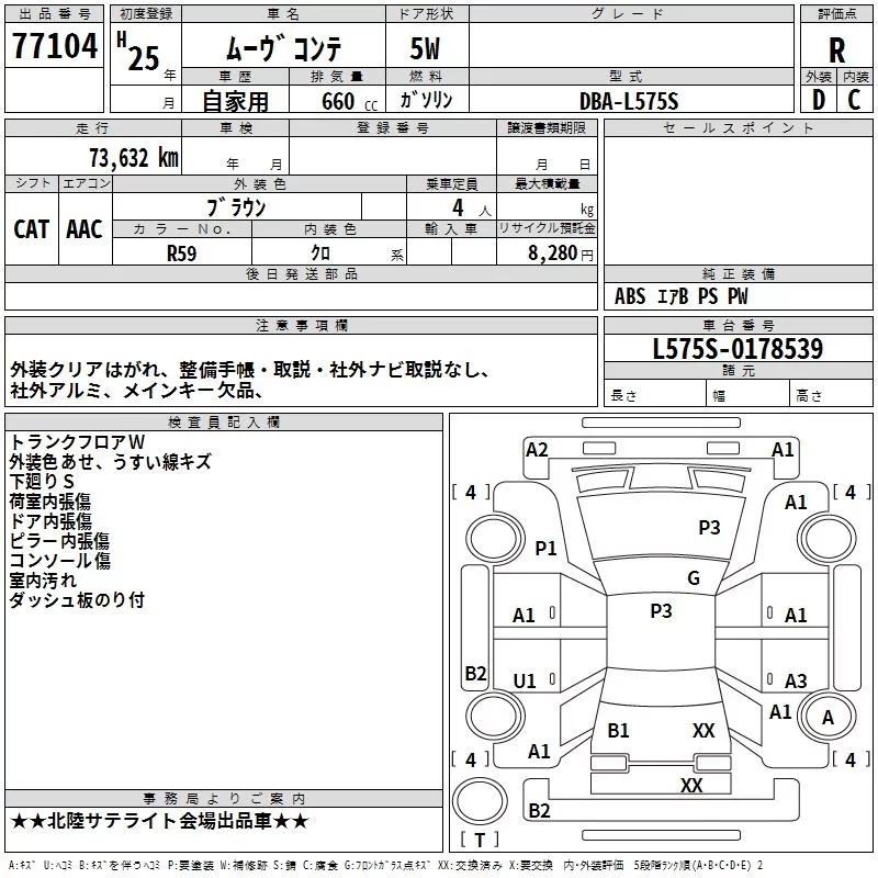 L | DBA-L575S | KF | FF | CVT | 658cc | 52ps(38kW)/6800rpm | AИ-92 | 1 125 000 |