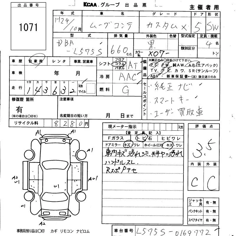 G NAVI | DBA-L575S | KF | FF | CVT | 658cc | 52ps(38kW)/6800rpm | AИ-92 | 1 320 000 | |