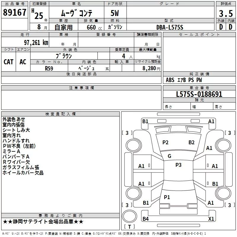 X | DBA-L575S | KF | FF | CVT | 658cc | 52ps(38kW)/6800rpm | AИ-92 | 1 225 000 | |