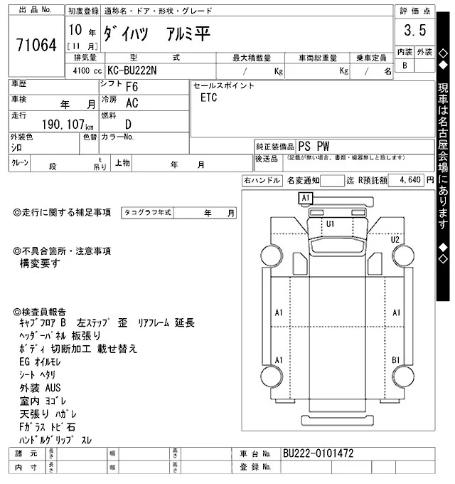 - Кузов: BU222N