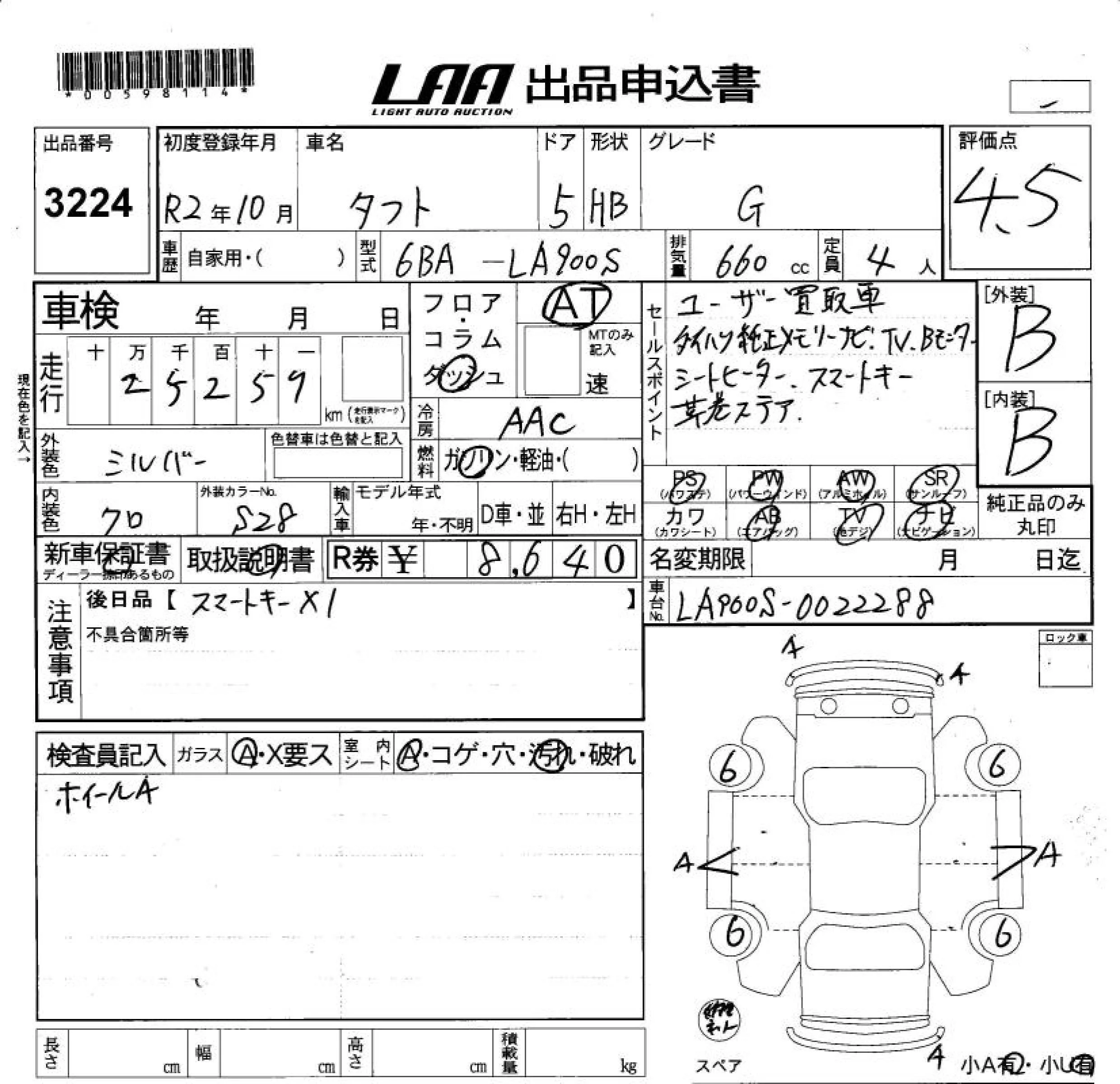 G | 6BA-LA910S | KF | Full-time 4WD | CVT | 658cc | 52ps(38kW)/6900rpm | AИ-92 | 1 611 500 | |