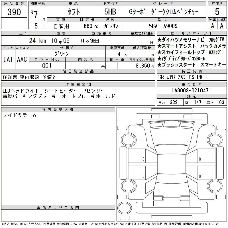 • Комплектация: G Turbo Dark ク Low ムベンチャ