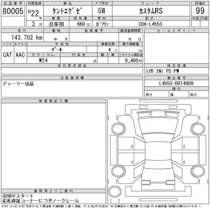 CUSTOM RS | CBA-L455S | KF-DET | FF | CVT | 658cc | 64ps(47kW)/6000rpm | AИ-92 | 1 570 000 | |