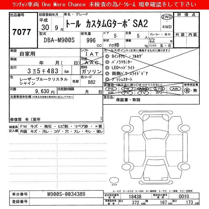 CUSTOM G LIMITED SA III | DBA-M910S | 1KR-FE | Full-time 4WD | CVT | 996cc | 69ps(51kW)/6000rpm | AИ-92 | 2 057 400 | |