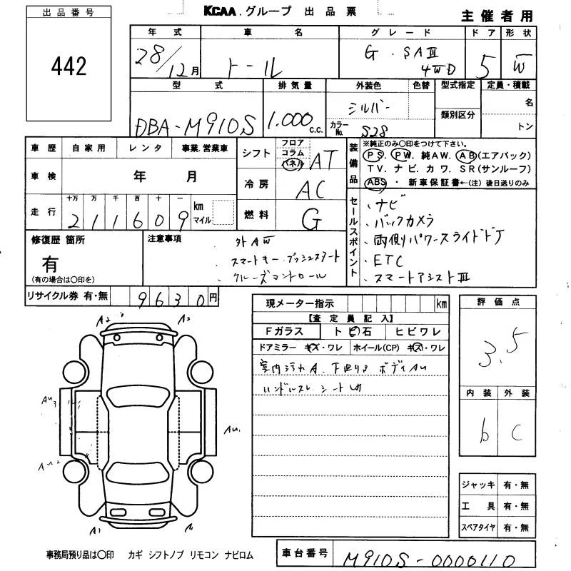CUSTOM G | DBA-M910S | 1KR-FE | Full-time 4WD | CVT | 996cc | 69ps(51kW)/6000rpm | AИ-92 | 1 944 000 | |