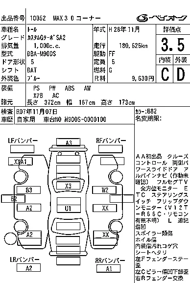 CUSTOM G | DBA-M910S | 1KR-FE | Full-time 4WD | CVT | 996cc | 69ps(51kW)/6000rpm | AИ-92 | 1 944 000 | |
