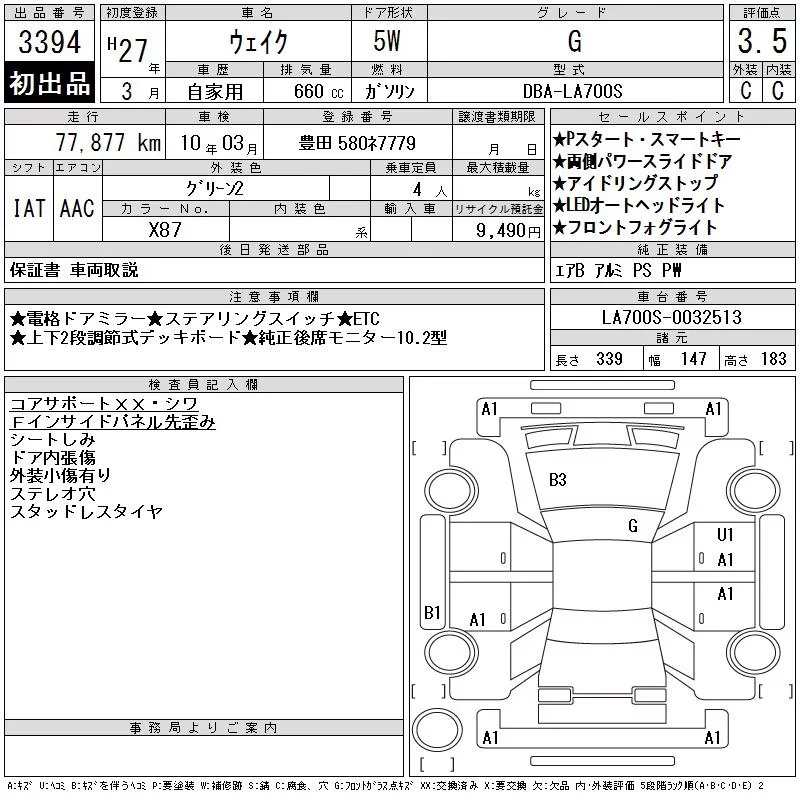 Daihatsu WAKE 2015 • 594245 ₽ под ключ из Японии