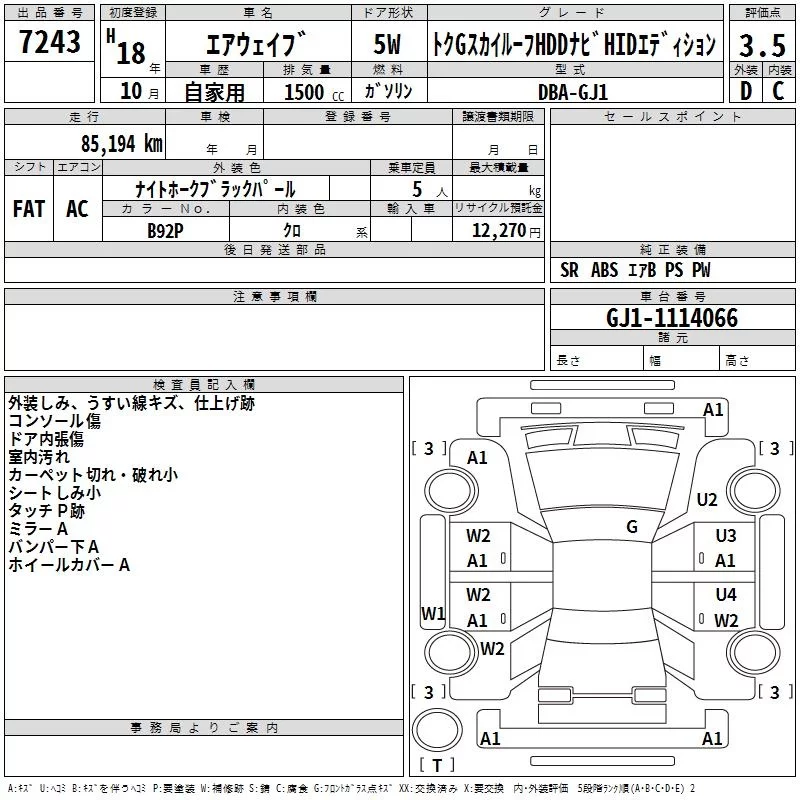 - Комплектация: トクGス Key ル-フHDD Navi HID
