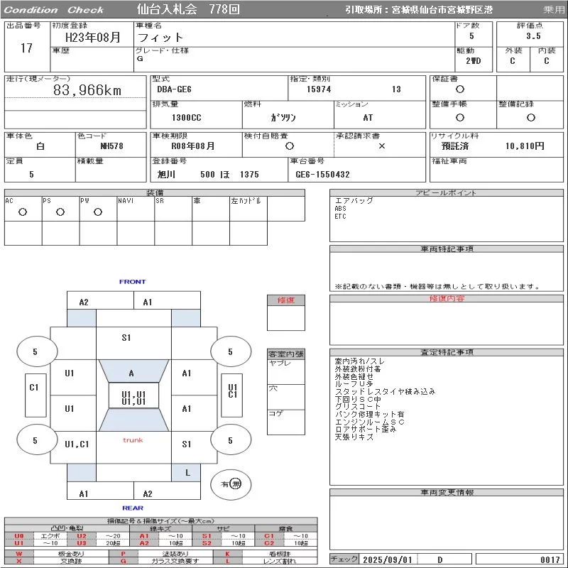 G SMART SELECTION | DBA-GE6 | L13A | FF | CVT | 1339cc | 99ps(73kW)/6000rpm | AИ-92 | 1 350 000 | |