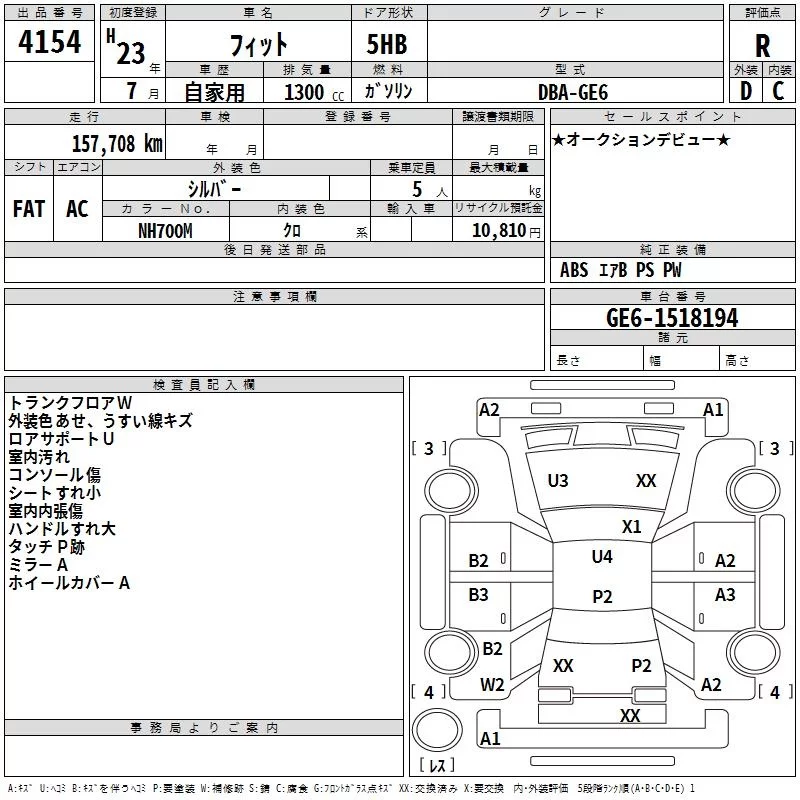 • Аукционный лист