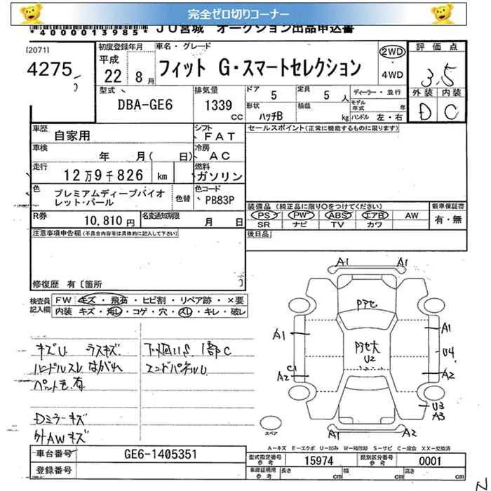 G | DBA-GE7 | L13A | Full-time 4WD | 5AT | 1339cc | 100ps(73kW)/6000rpm | AИ-92 | 1 405 600 | |