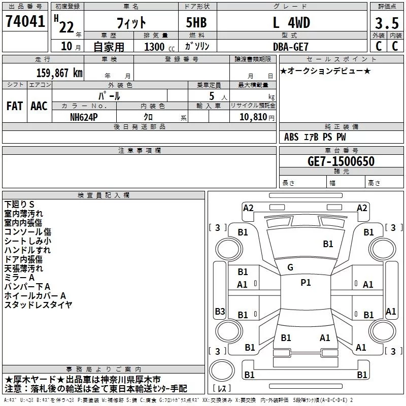 G | DBA-GE6 | L13A | FF | 5MT | 1339cc | 100ps(73kW)/6000rpm | AИ-92 | 1 230 000 | |