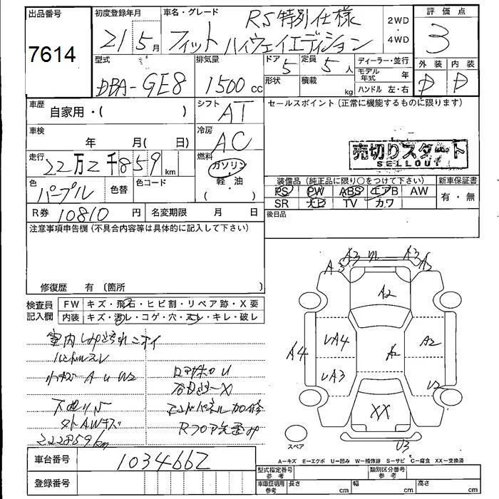 RS | DBA-GE8 | L15A | FF | 5MT | 1496cc | 120ps(88kW)/6600rpm | AИ-92 | 1 690 000 | |