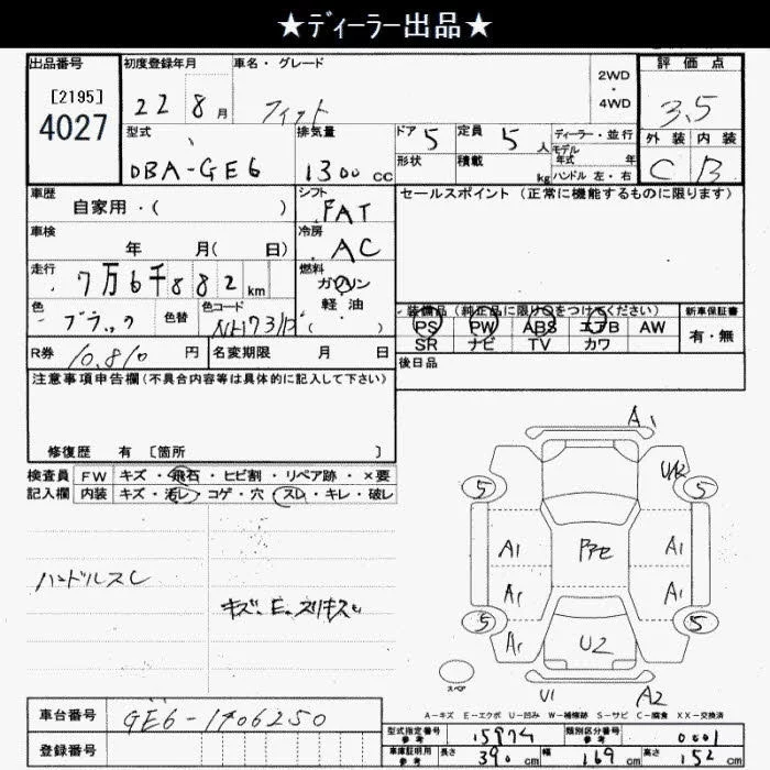 G | DBA-GE6 | L13A | FF | 5MT | 1339cc | 100ps(73kW)/6000rpm | AИ-92 | 1 230 000 | |