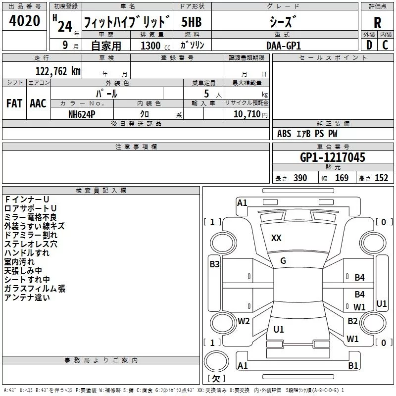 13G | DBA-GE6 | L13A | FF | 5MT | 1339cc | 100ps(73kW)/6000rpm | AИ-92 | 1 230 000 |