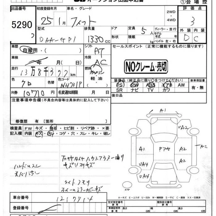 13G F PACKAGE | DBA-GK3 | L13B | FF | 5MT | 1317cc | 100ps(73kW)/6000rpm | AИ-92 | 1 360 000 | |